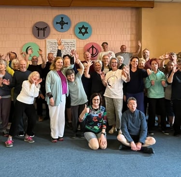 Tussen Jan en Do staat een koppelteken. Vanuit verbinding met jezelf en de anderen komt warmhartigheid, mededogen en affectie voort, essentiële bouwstenen voor tevredenheid, veerkracht en geluk, voor jouw en voor de samenleving. Samen-zijn is geen luxe, maar de kern van ons mens-zijn en van ons geluk! Tai chi beoefening belichaamt dit aspect van VERBINDING op alle niveau's (foto: Golden Flower gemeenschap tijdens de internationale training in het Verenigd Koninkrijk 2025)
